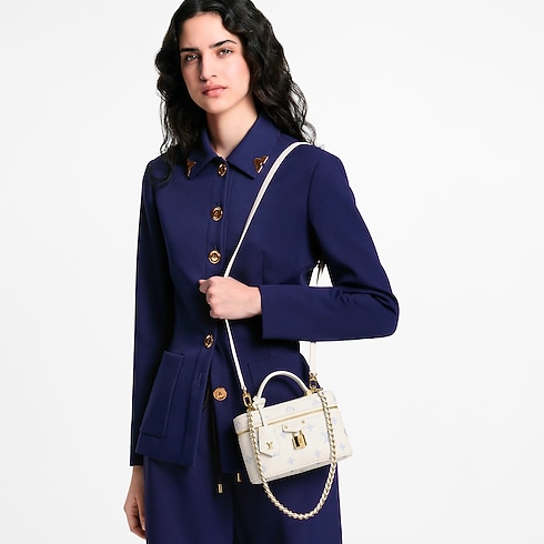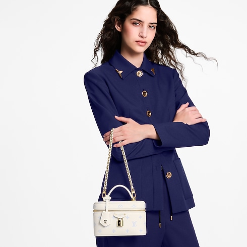 Modelled on archival Louis Vuitton cases, this Vanity Chain Pouch embodies the House’s spirit of travel. It is crafted from signature Monogram Empreinte leather in an elegant two-tone palette and features a signature LV engraved padlock. The functional design, which is sized to fit essential items such as a small coin purse and sunglasses, includes a removable strap and chain.