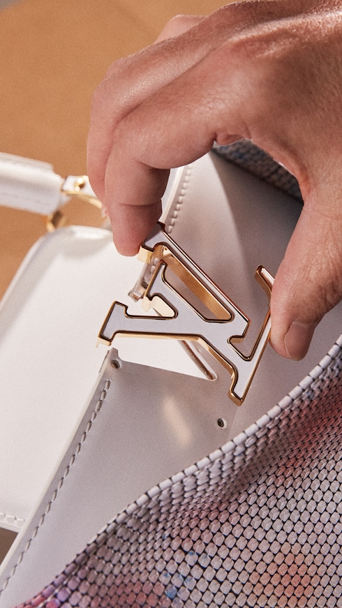 For a trompe l’oeil effect, the Maison developed a new technology to emboss a woven glass bead pattern onto supple leather, carefully enveloping the Capucines to mirror the organic forms of the original oeuvres, while creating additional exterior pockets. “Conceptual craftsmanship is at the core of all my work. With the team of artisans at Louis Vuitton, there was a shared love for experimentation and rigorous attention to detail.” - Liza Lou