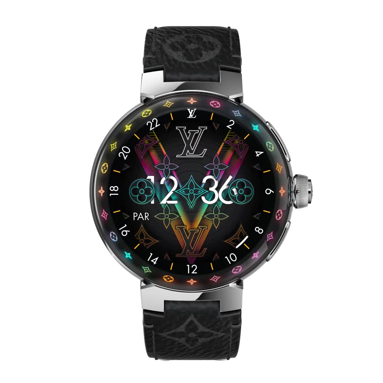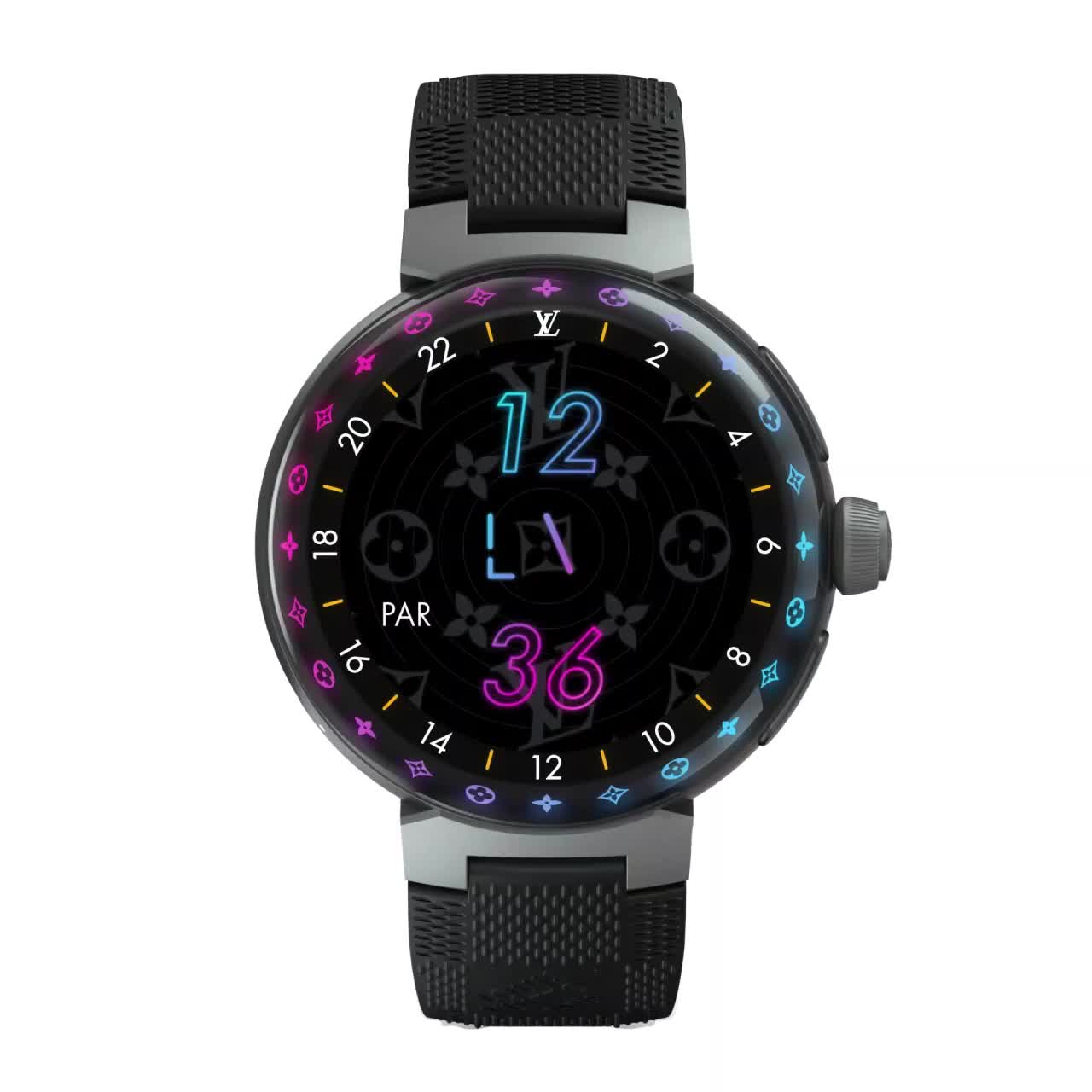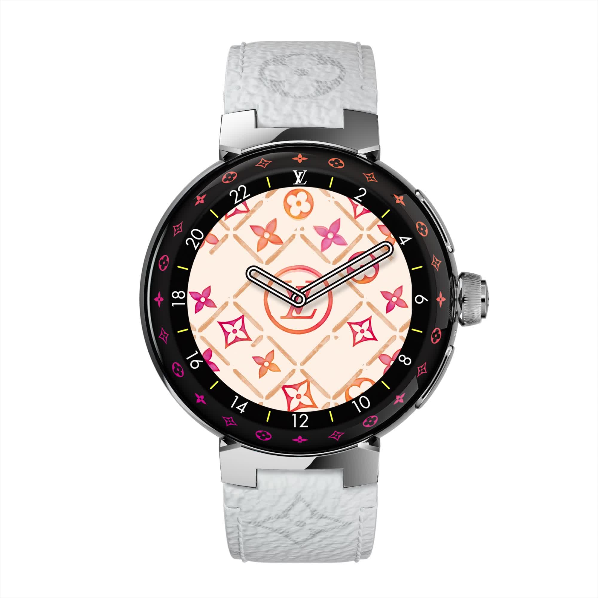 Over the smooth edge, 24 LED lights animate the signature Louis Vuitton Monogram ring, like a dancing kaleidoscope of colours that create a mesmerising glow-in-the-dark animation whenever the watch is activated.