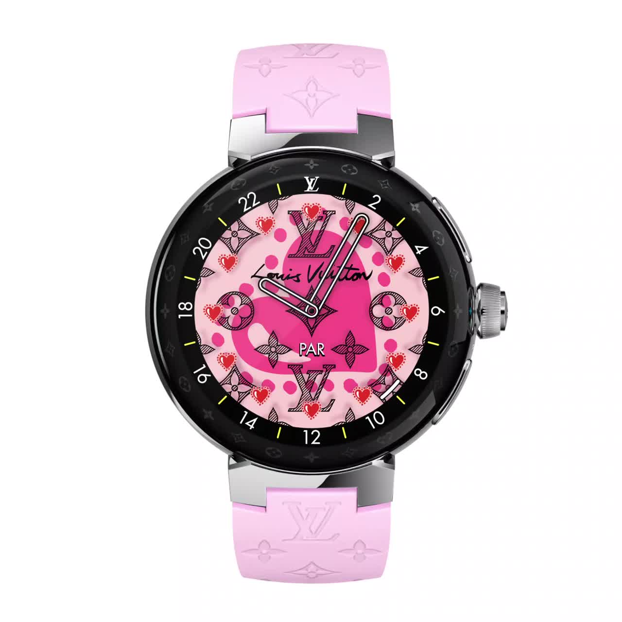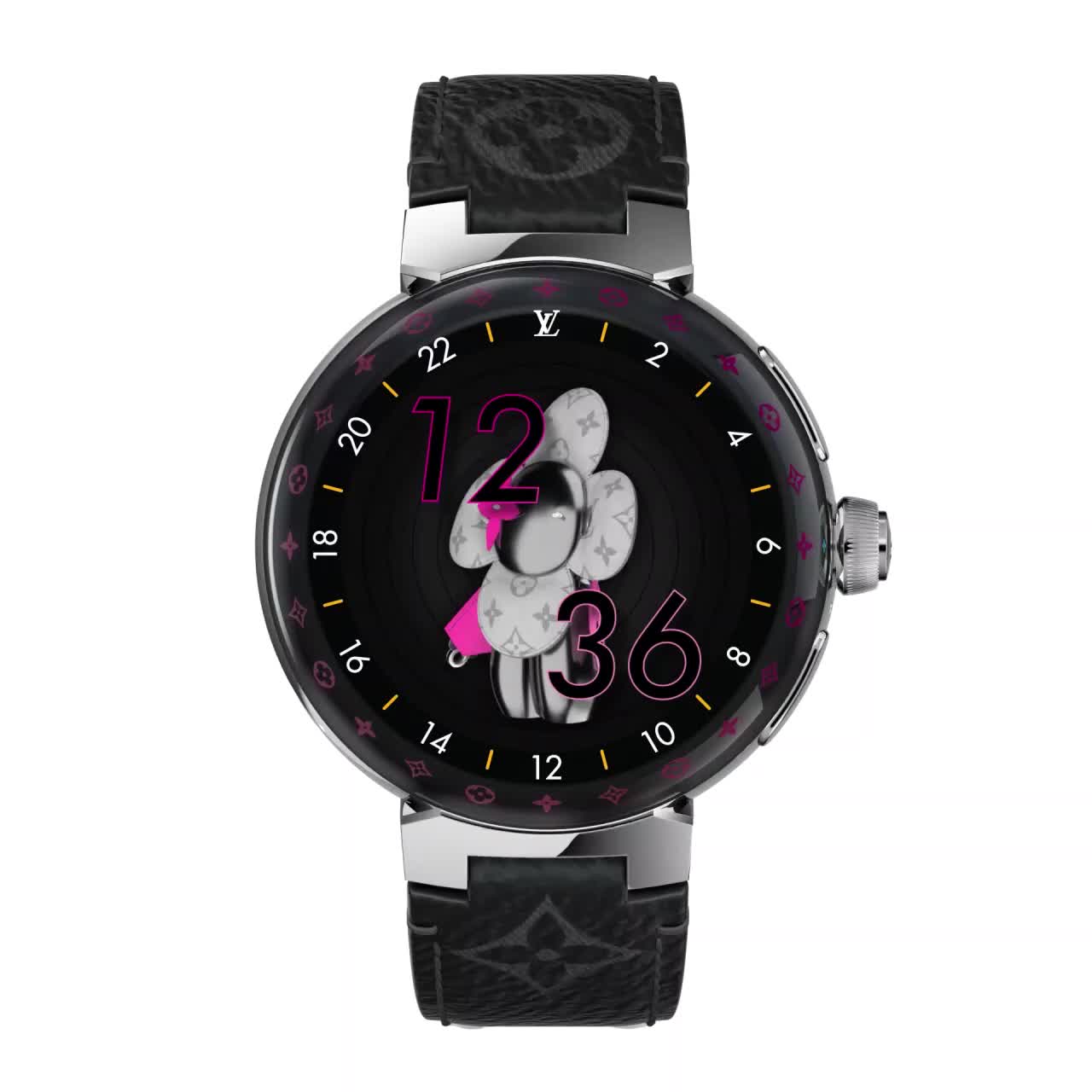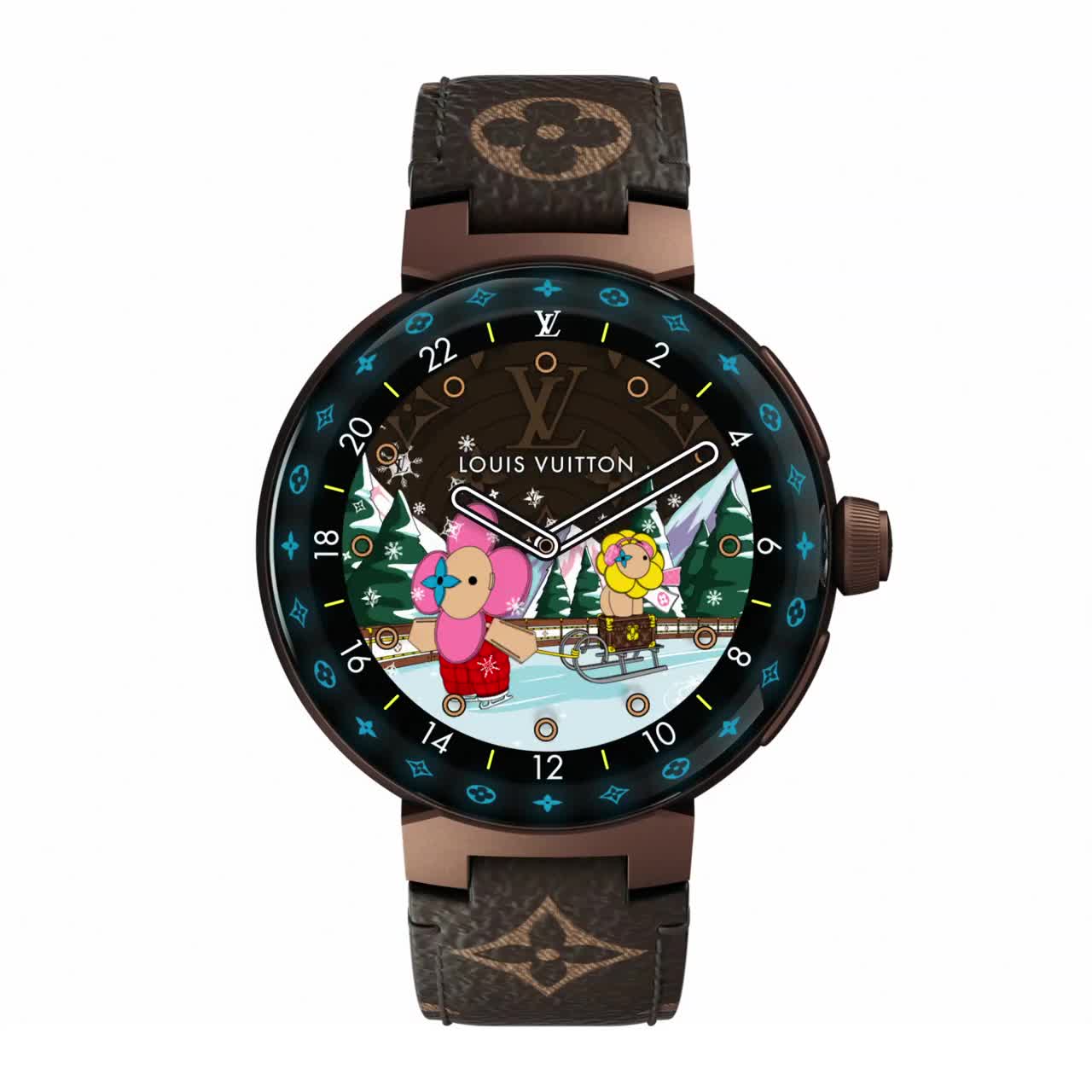 Over the smooth edge, 24 LED lights animate the signature Louis Vuitton Monogram ring, like a dancing kaleidoscope of colours that create a mesmerising glow-in-the-dark animation whenever the watch is activated.