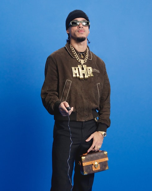 Estetika dandy ala Pharrell Williams diperkaya dengan elemen travel, merepresentasikan mentalitas global Rumah Mode lewat siluet unik. Sebuah refleksi dari keberagaman manusia, corak khas bertransformasi menjadi konfigurasi dinamis — menghiasi tas dan aksesori ikonis.