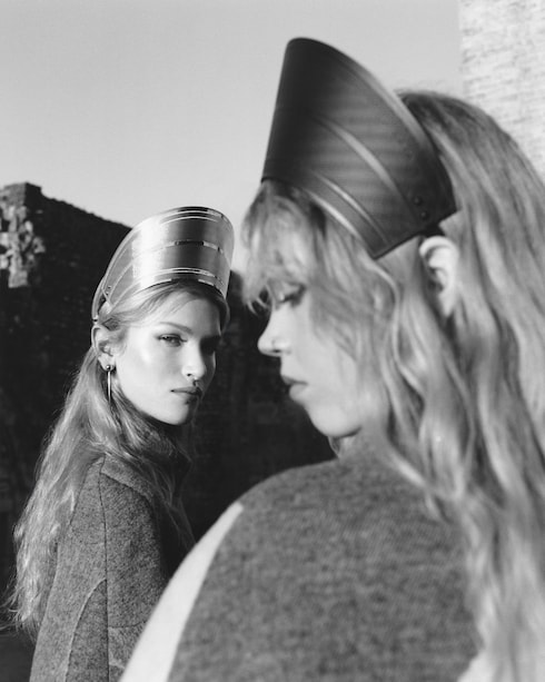Seperti lamunan abadi yang terungkap perlahan, siluet-siluet pahat dan sentuhan metalik bergaung lewat perhiasan mode, tas tangan, dan aksesori — serpihan masa lalu yang terbangun kembali, dipenuhi kekuatan feminin.